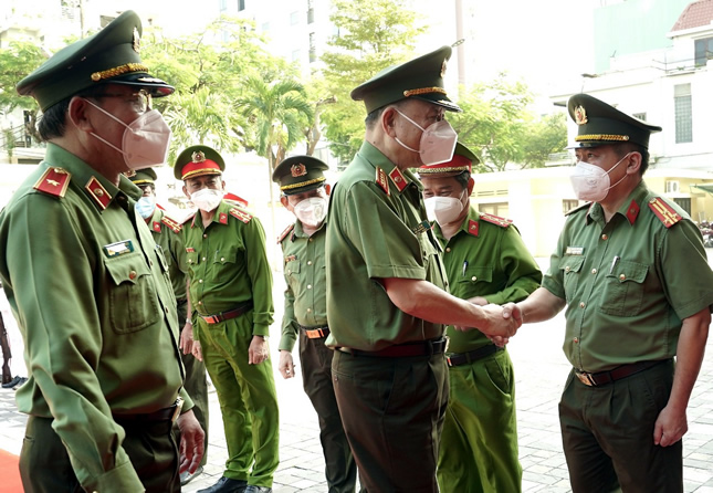 Phát biểu trong chuyến thăm, chúc Tết Ban Giám đốc, cán bộ chiến sĩ Công an TP Đà Nẵng nhân dịp Tết Nguyên đán Nhâm Dần- 2022 diễn ra chiều 24-1. Đại tướng Tô Lâm- Ủy viên Bộ Chính trị, Bí thư Đảng ủy Công an Trung ương, Bộ trưởng Bộ Công an gửi gắm, tin tưởng rằng với truyền thống, ý chí và quyết tâm phấn đấu Công an TP Đà Nẵng sẽ tiếp tục gặt hái những thành công trong công tác đảm bảo an ninh trật tự lẫn xây dựng hình ảnh người chiến sĩ Công an hết lòng vì nhân dân phục vụ.