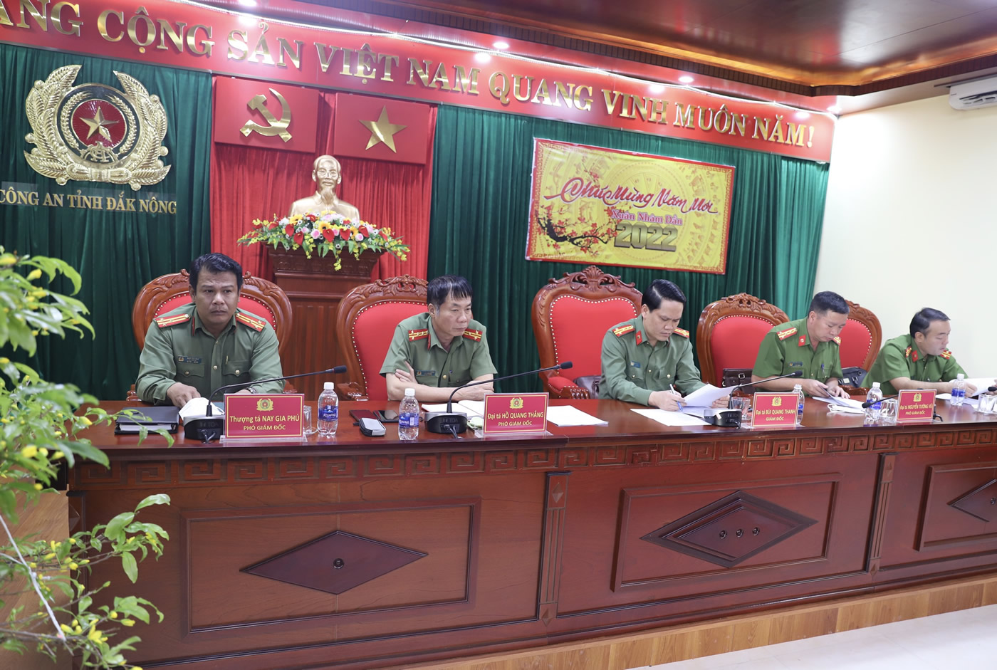 Trước đó, vào sáng cùng ngày, Công an tỉnh Đắk Nông cũng đã tham dự hội nghị trực tuyến giao ban đầu Xuân Nhâm Dần năm 2022 do Bộ Công an tổ chức với sự tham gia của Công an các đơn vị, địa phương trong cả nước. Tham dự hội nghị có Đại tá Bùi Quang Thanh, Ủy viên Ban Thường vụ Tỉnh ủy, Bí thư Đảng ủy, Giám đốc Công an tỉnh cùng các đồng chí Phó Giám đốc Công an tỉnh và trưởng Công an các đơn vị, địa phương trong tỉnh...