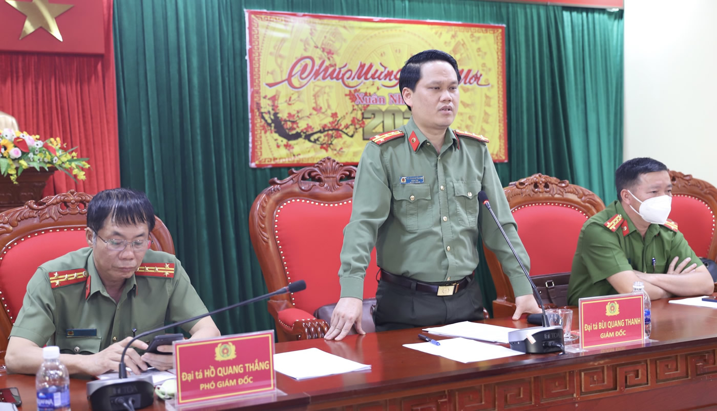 Đại tá Bùi Quang Thanh, Giám đốc Công an tỉnh phát biểu chỉ đạo tại Hội nghị giao ban của Công an tỉnh. |