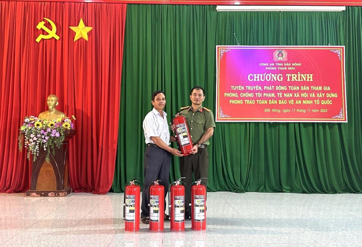 Dịp này, người dân còn được tập huấn và thực hành kỹ năng phòng cháy, chữa cháy và cứu nạn, cứu hộ khi có cháy nổ xảy ra. Phòng Tham mưu cũng đã trao tặng 10 bình chữa cháy cho chùa Phước Điền, xã Đắk Nia và Giáo xứ Nhân Cơ, xã Nhân Cơ nhằm giúp cho các cơ sở tôn giáo trang bị tốt các thiết bị phòng cháy, chữa cháy.