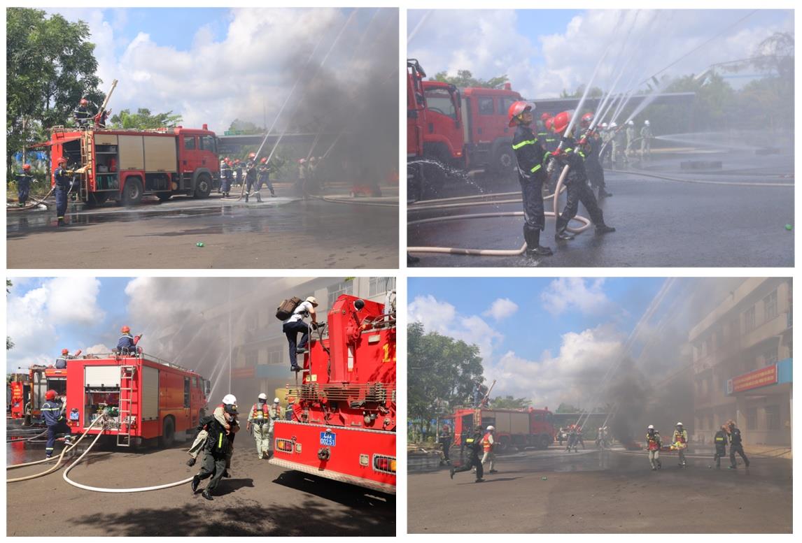 Để xử lý đám cháy, kịch bản đưa ra 3 giai đoạn: Xử lý cháy và CNCH của lực lượng cơ sở tại Công ty nhôm Đắk Nông - TKV; Xử lý tình huống cháy và triển khai lực lượng, phương tiện chữa cháy và CNCH của Phòng Cảnh sát PCCC và CNCH và các lực lượng thuộc Công an tỉnh; Xử lý tình huống của các lực lượng trên địa bàn tỉnh chi viện và khám nghiệm hiện trường, điều tra nguyên nhân vụ cháy.
