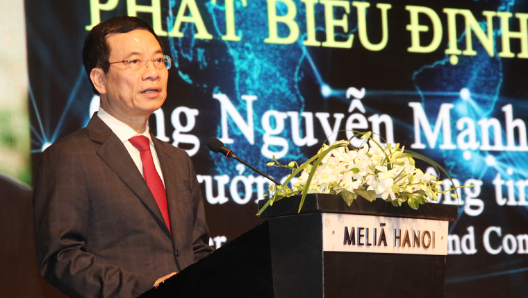 Bộ trưởng Bộ TT&TT Nguyễn Mạnh Hùng phát biểu tại hội thảo. |