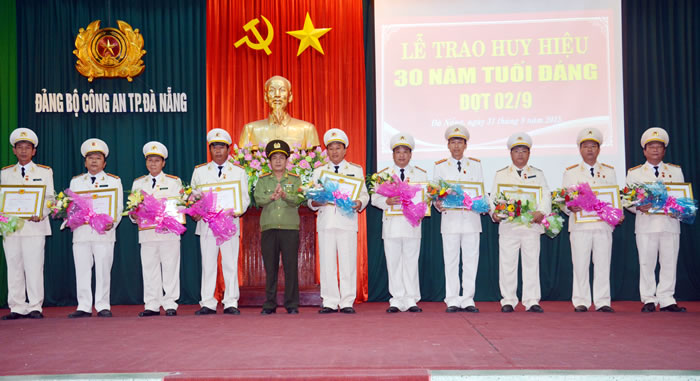 Cũng trong ngày 31-8, Đảng ủy, Giám đốc CATP Đà Nẵng tổ chức Lễ trao huy hiệu 30 năm tuổi Đảng đợt 2-9-2015 cho 12 đồng chí đảng viên thuộc Đảng bộ Công an thành phố.