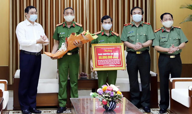 Chủ tịch UBND TP Huỳnh Đức Thơ khen thưởng lực lượng CATP có thành tích khám phá thành công chuyên án 320B, bắt nhóm đối tượng tổ chức đánh bạc và đánh bạc trên không gian mạng với tổng số tiền trên 600 tỷ đồng. |