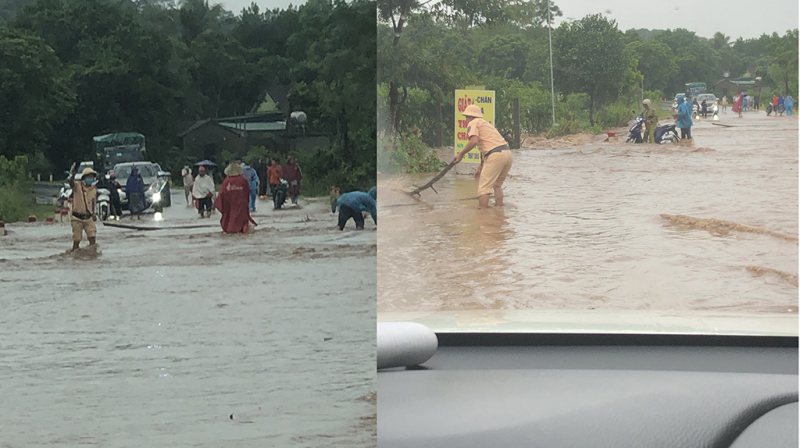 Ngày 25-9, trước diễn biến phức tạp của tình hình mưa lũ, cán bộ, đoàn viên, thanh niên Phòng CSGT, Công an các huyện Quỳ Châu, Quỳ Hợp, Quế Phong, Công an thị xã Thái Hòa (tỉnh Nghệ An). đã có mặt từ sáng sớm để phân luồng giao thông tại một số tuyến quốc lộ. Tại những địa điểm có mực nước lên cao, ngập nặng, các cán bộ, chiến sĩ đã cắm biển cảnh báo cấm người di chuyển qua lại. Những tuyến đường nào có mực nước thấp thì dùng xe chuyên dụng hỗ trợ người, phương tiện di chuyển qua lại nhằm đảm bảo an toàn.