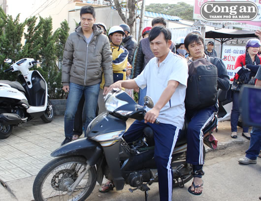 Trần Thanh Phong điều khiển xe máy chở Nguyễn Văn Lành trong buổi thực nghiệm điều tra. |