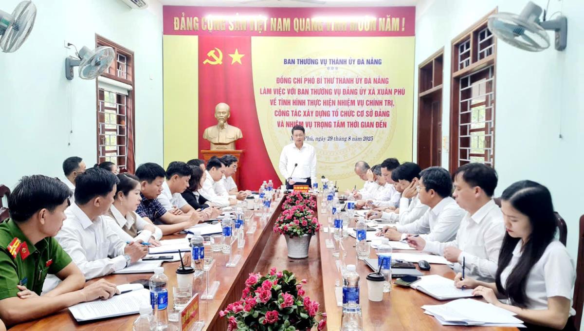 Ngày 29-8, Phó Bí thư Thành ủy Đà Nẵng Ngô Xuân Thắng và Phó Chủ tịch UBND TP Trần Chí Cường đã làm việc với Đảng ủy xã Xuân Phú, đánh giá tình hình thực hiện nhiệm vụ chính trị, công tác xây dựng Đảng và các nhiệm vụ trọng tâm sắp tới.