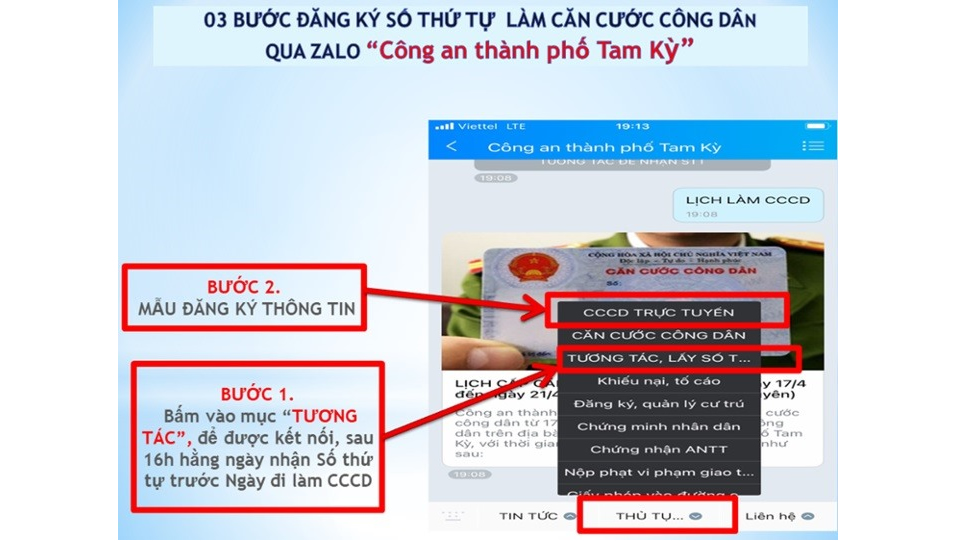 Hướng dẫn thủ tục đăng ký làm CCCD trên địa chỉ Zalo "Công an thành phố Tam Kỳ". |