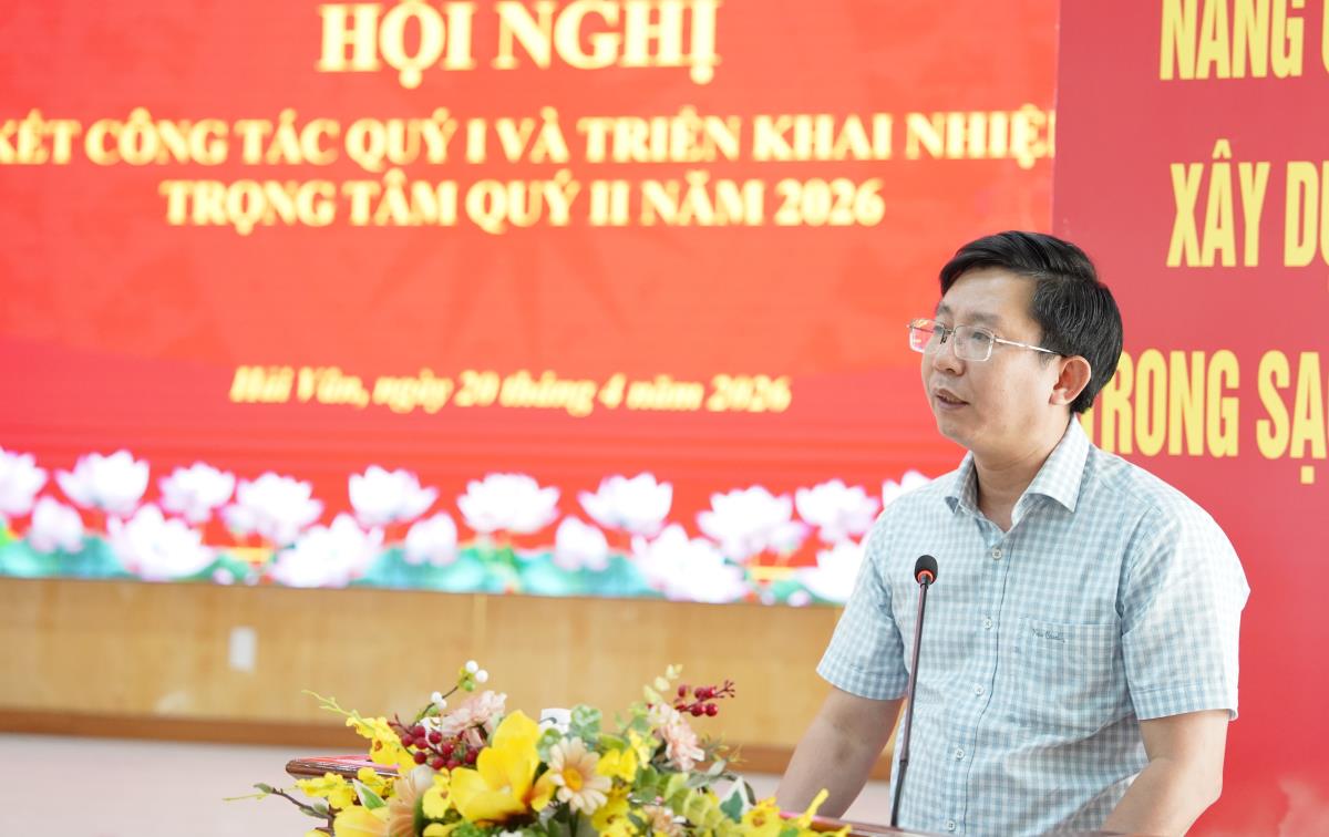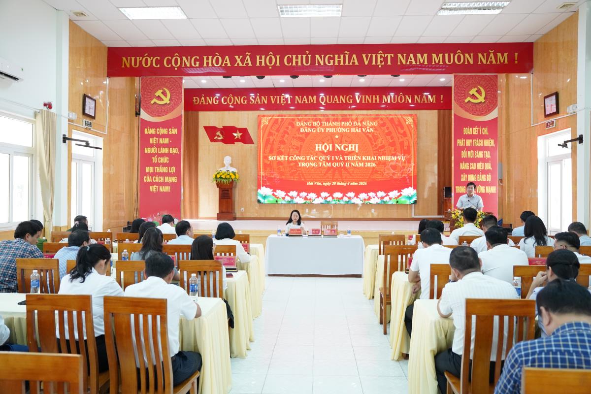 Phát biểu kết luận hội nghị, Bí thư Đảng ủy phường Hải Vân Hoàng Thanh Hòa nhấn mạnh, quý II là giai đoạn tăng tốc, có ý nghĩa quyết định đối với việc hoàn thành các mục tiêu năm 2026. Cán bộ, đảng viên nâng cao tinh thần trách nhiệm, phát huy vai trò nêu gương, “dám nghĩ, dám làm, dám chịu trách nhiệm”, tập trung thực hiện hiệu quả các nhiệm vụ trọng tâm. Trong đó, tiếp tục xây dựng Đảng và hệ thống chính trị trong sạch, vững mạnh; gần dân, sát dân, sâu sát cơ sở; đẩy mạnh cải cách hành chính, chuyển đổi số; tháo gỡ khó khăn, thúc đẩy phát triển kinh tế gắn với đảm bảo an sinh xã hội, nâng cao chất lượng đời sống nhân dân; Đồng thời, tập trung đẩy nhanh tiến độ các dự án trọng điểm; tăng cường quản lý trật tự đô thị, giữ vững quốc phòng – an ninh, đảm bảo trật tự an toàn xã hội, không để bị động, bất ngờ trong mọi tình huống.