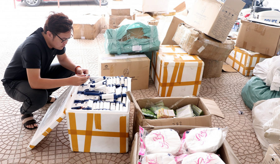 30 thùng hàng các đối tượng dùng để lừa bị hại. |