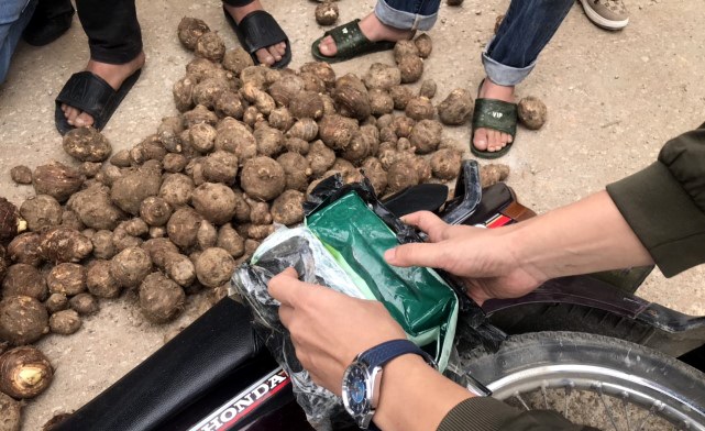 Số ma túy được ngụy trang trong bì tải đựng khoai sọ.