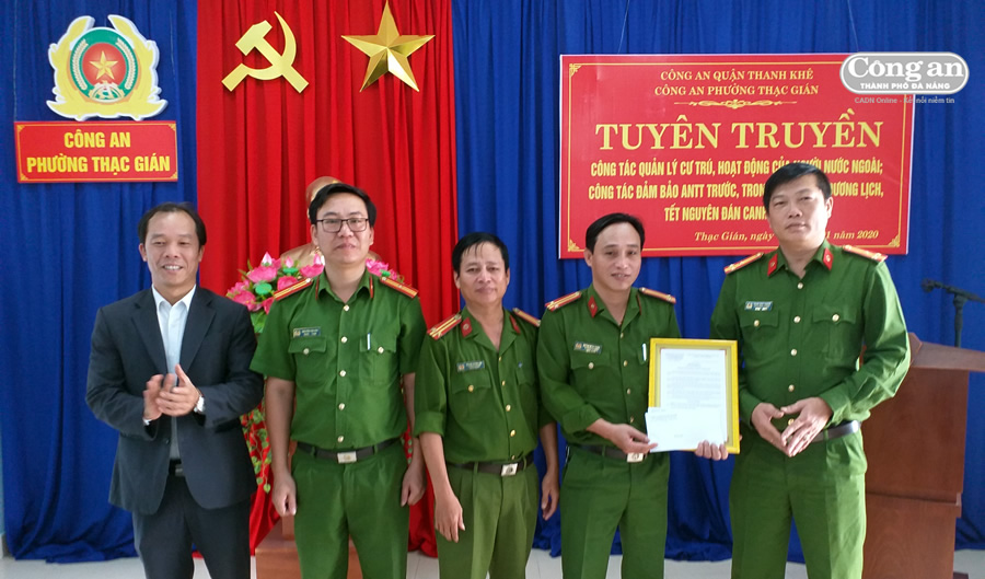 Lãnh đạo CAQ Thanh Khê và UBND P.Thạc Gián khen thưởng đột xuất CAP Thạc Gián. |
