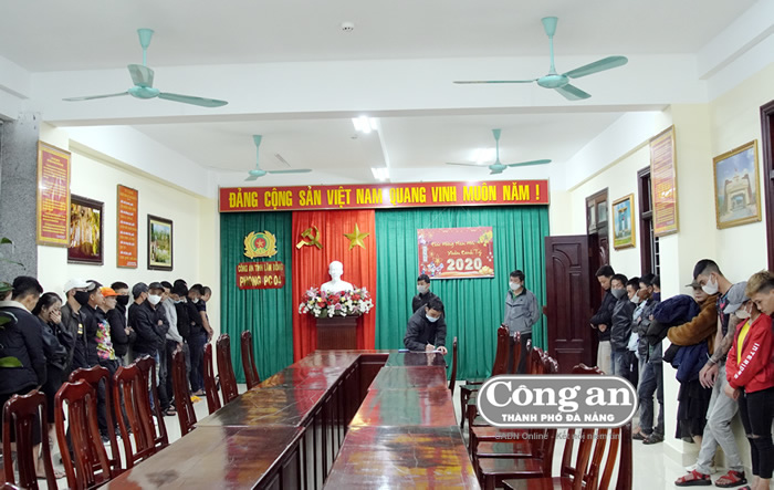 Hàng chục đối tượng “bay đêm” trong quán bị đưa về Phòng CSMT để làm rõ. |