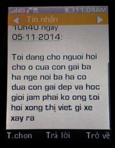 | Tin nhắn đe dọa gia đình bà Hà: “Tôi đang cho người hỏi chỗ ở của con gái bà Hà, nghe nói bà Hà có đứa con gái đẹp và học giỏi lắm phải không ông. Tôi hỏi xong thì việc gì xảy ra”... |