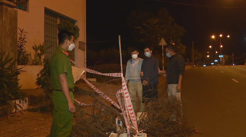 Lực lượng Công an đưa đối tượng đến hiện trường vụ trộm để kiểm tra. |