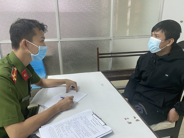 Cơ quan Công an lấy lời khai đối tượng Nhân.