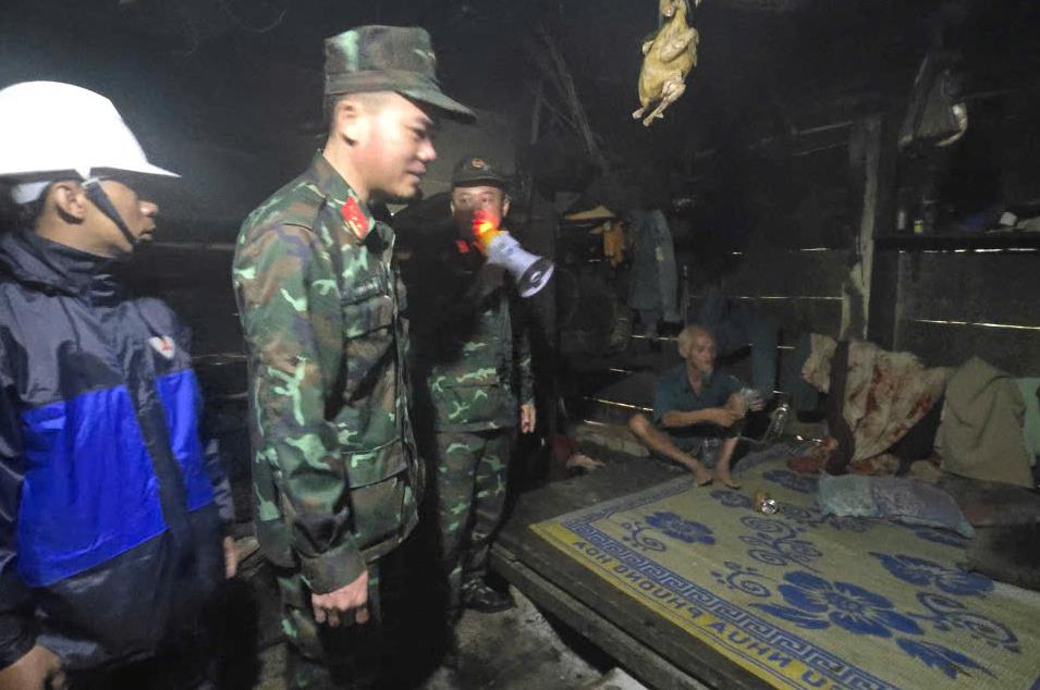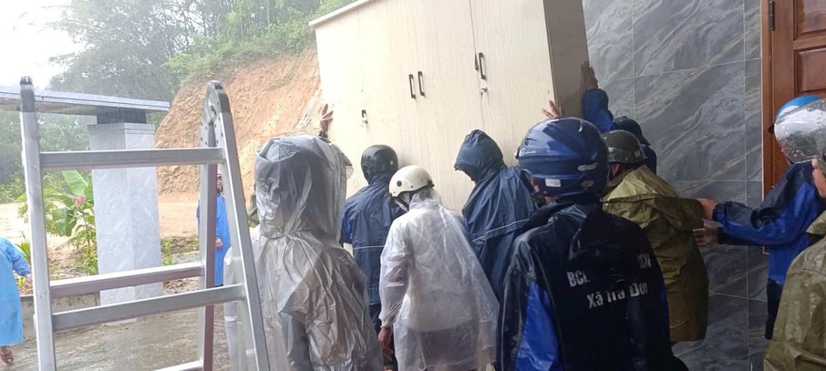 Lực lượng chức năng nhanh chóng giúp người dân di chuyển tài sản, đồng thời dựng lều tạm tại Trường Mầm non thôn Trà Huynh, cách khu vực nguy hiểm khoảng 1km để túc trực, theo dõi diễn biến kịp thời ứng phó.