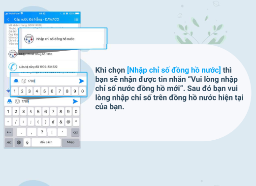 BƯỚC 3: KHÁCH HÀNG CÓ THỂ TỰ NHẬP CHỈ SỐ ĐỒNG HỒ NƯỚC ĐỂ CÓ THỂ ĐỐI CHIẾU CHỈ SỐ ĐỒNG HỒ NƯỚC SỬ DỤNG HÀNG THÁNG