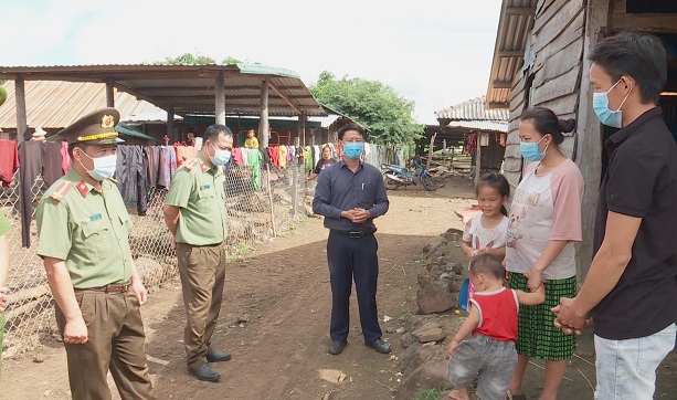 Chính quyền địa phương và lực lượng Công an đến nhà dân để thăm hỏi, tuyên truyền pháp luật.