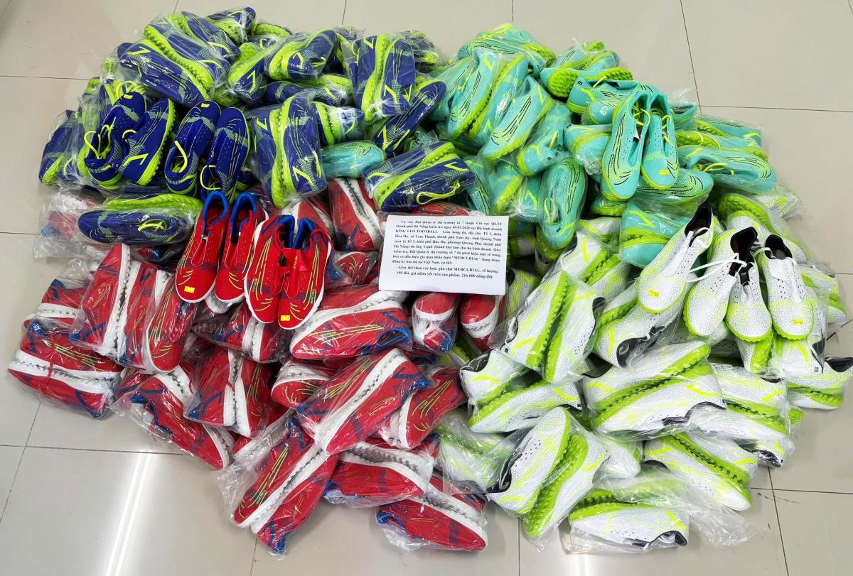 Lô giày giả của cơ sở kinh doanh ở phường Hương Trà bị lực lượng QLTT TP phát hiện.