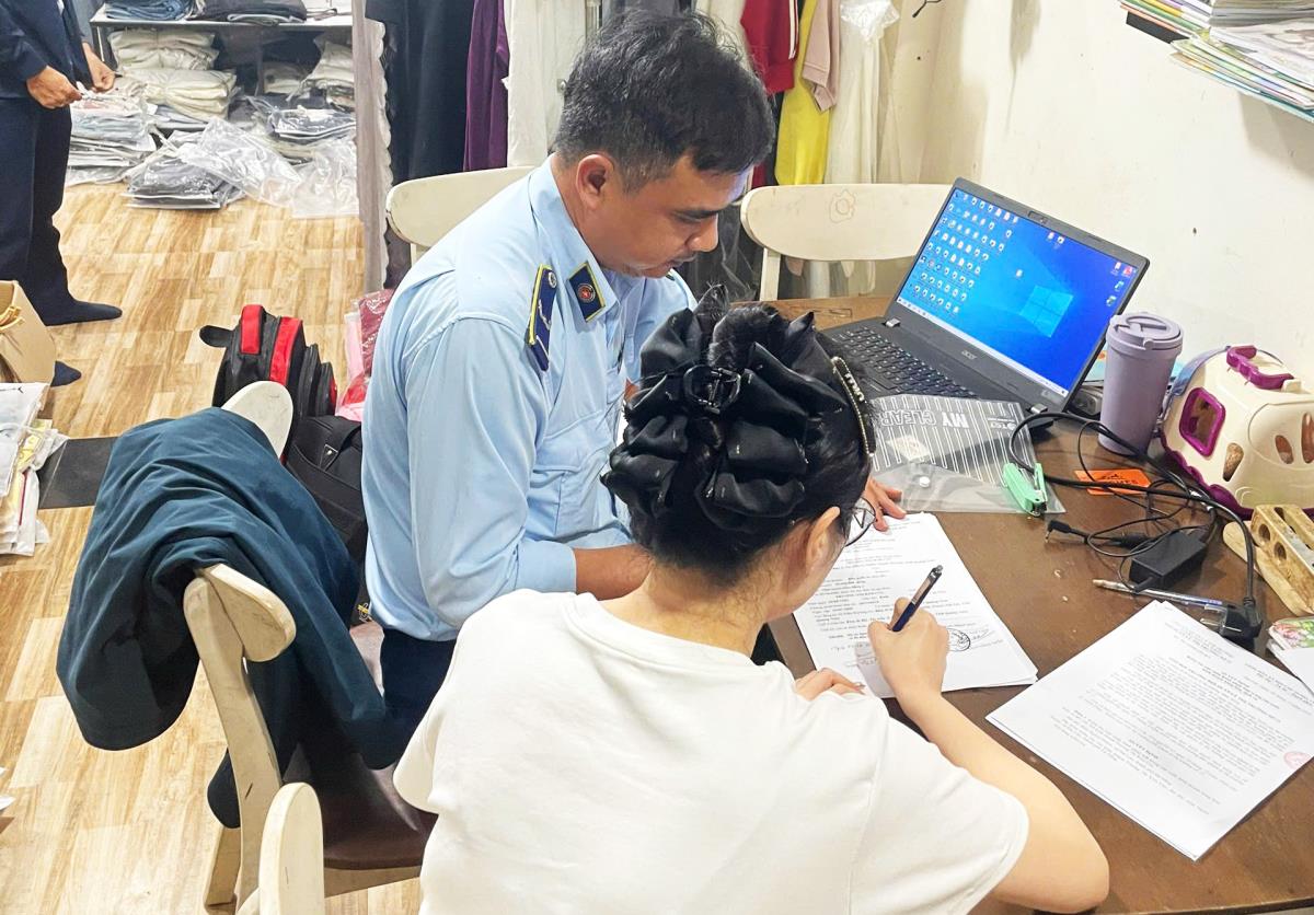 Đội QLTT Số 11 lập biên bản vi phạm hành chính trên lĩnh vực thương mại đối với chủ cơ sở kinh doanh ở xã Đại Lộc.