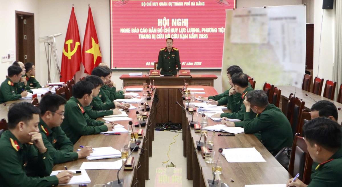 Ngày 27-1, Bộ Chỉ huy Quân sự TP Đà Nẵng tổ chức hội nghị nghe báo cáo bản đồ chỉ huy lực lượng, phương tiện, trang bị cứu hộ, cứu nạn năm 2026, nhằm chủ động chuẩn bị ngay từ đầu năm, không để bị động, bất ngờ trong mọi tình huống thiên tai, sự cố có thể xảy ra.
