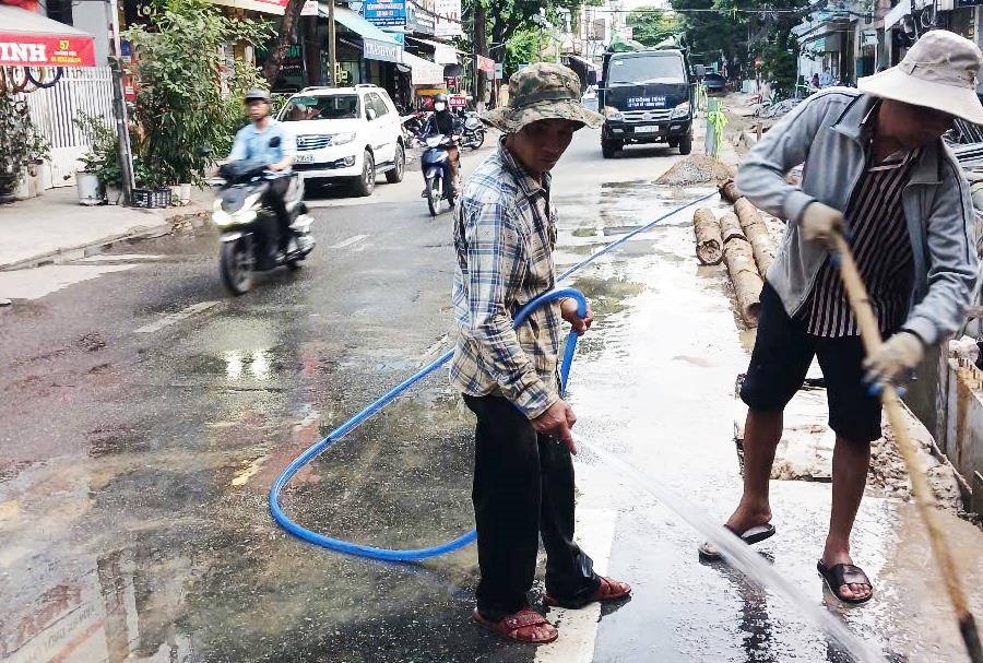 Bên cạnh đó, trong quá trình thi công, nhà thầu cho lắp đặt rào chắn có biển báo, đèn báo hiệu nhằm cảnh báo người dân trong khu vực, nhất là người tham gia giao thông trên đường có công trình đang thi công để đảm bảo an toàn giao thông. Ngoài ra, trong quá trình thi công, nhà thầu còn thường xuyên tưới nước hàng ngày trên 2 tuyến đường này để hạn chế bụi bặm, sau khi thi công xong trong ngày thì tiến hành vệ sinh, thu dọn gọn gàng hiện trường…