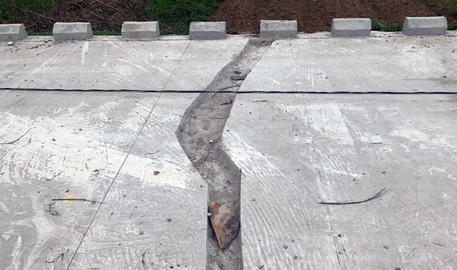 Theo ghi nhận, hàng loạt vết nứt kéo dài trên mặt đê, một số vết nứt đã được nhà thầu khoan cắt thành rãnh rộng khoảng 30cm, nhiều điểm tiếp tục xuất hiện vết nứt dù đã được đổ bê-tông trám lại. Để khắc phục tình trạng hư hỏng, đơn vị thi công đã cho khoan cắt để xử lý. Tuy nhiên, việc khoan cắt không đúng theo biên bản thống nhất của các đơn vị liên quan. Ngoài ra, theo ghi nhận việc mặt đê đổ bê-tông không đủ độ dày 20cm theo hồ sơ thiết kế.