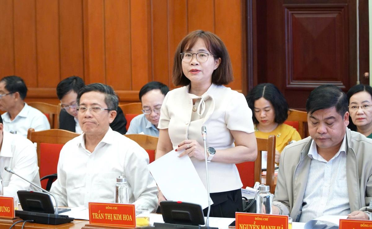 Bà Trần Thị Kim Hoa - Ủy viên Ban Thường vụ Thành ủy, Giám đốc Sở Nội vụ, Thư ký UBBC thành phố Đà Nẵng báo cáo tại phiên họp.