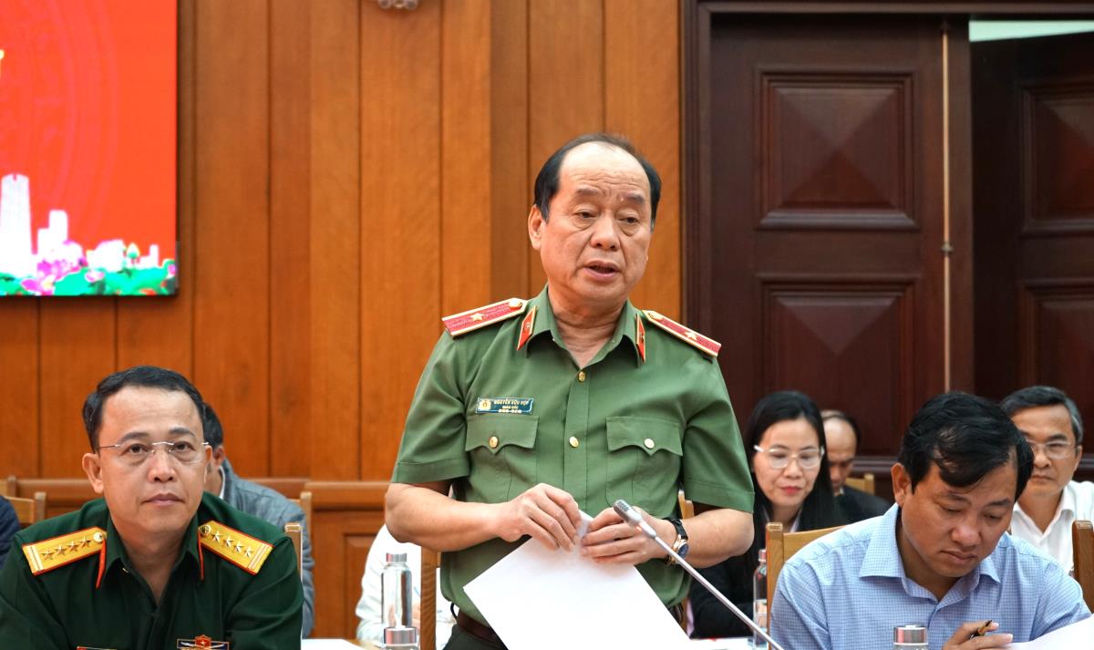 Thiếu tướng Nguyễn Hữu Hợp - Ủy viên Ban Thường vụ Thành ủy, Bí thư Đảng ủy, Giám đốc Công an thành phố Đà Nẵng báo cáo tại phiên họp.