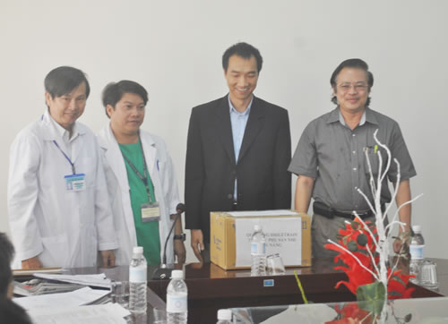 Đại diện Bệnh viện Phụ sản Nhi nhận quà từ tổ chức Smile Train. |
