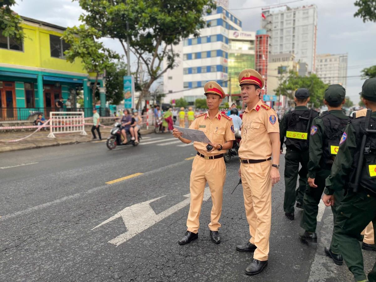 Theo ghi nhận của chúng tôi, từ 14 giờ ngày 31-5, 100% CBCS các phòng ban nghiệp vụ, Công an các địa phương được phân công nhiệm vụ bảo vệ đã khẩn trương tập trung về chốt điểm của mình. Gạt những giọt mồ hôi dưới nắng khi đang giao nhiệm vụ cho CBCS đảm bảo trật tự an toàn giao thông (TTATGT) trên tuyến đường Nguyễn Thế Lộc (quận Sơn Trà), Thượng tá Phan Văn Thương- Trưởng phòng CSGT thông tin: "Cùng với các lực lượng làm công tác đảm bảo ANTT, khâu đảm bảo TTATGT trên các tuyến là nhiệm vụ mỗi CBCS CSGT phải vào cuộc và hoàn thành nhiệm vụ tốt nhất. Chỉ mong sao DIFF 2025 khép lại với thật nhiều niềm vui như thành phố mong đợi".