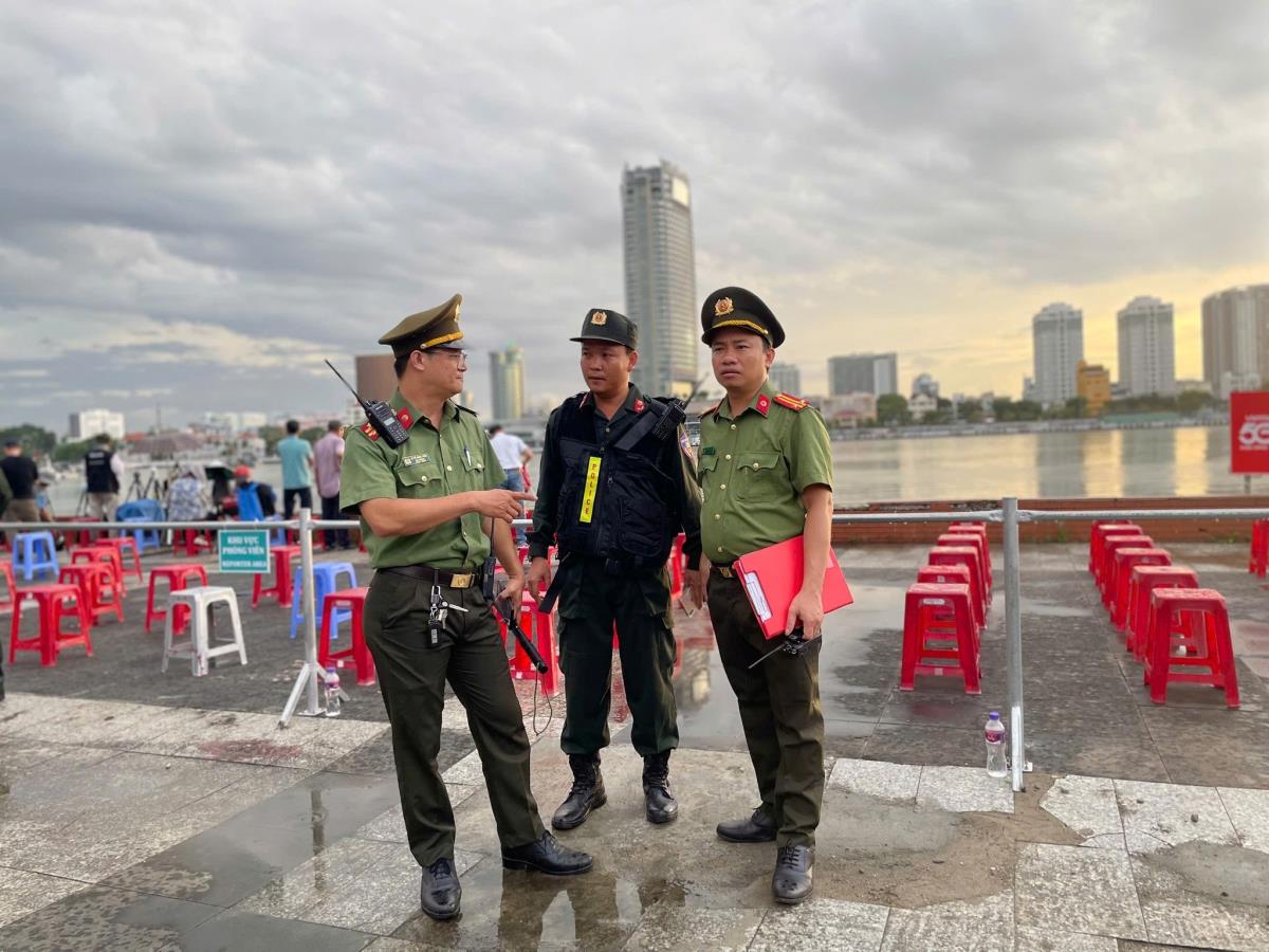 Càng về chiều, lực lượng CSGT - TT triển khai hiệu quả tại các điểm chốt chặn, đồng thời hướng dẫn người dân và du khách di chuyển hợp lý, tránh ùn tắc. Nhiều tuyến đường được cấm xe theo khung giờ đã thông báo từ trước, đảm bảo lưu thông thông suốt và an toàn. Tại các chốt dự báo sẽ có đông người dân và du khách di chuyển đến để chờ xem màn pháo hoa "khai tiệc" như cầu sông Hàn, cầu Thuận Phước, cầu Rồng, cầu Trần Thị Lý…, CBCS được giao nhiệm vụ không chỉ đảm bảo ANTT, TTATXH, điều tiết giao thông mà còn có nhiệm vụ nhắc nhở, cảnh báo cho tất cả mọi người phải luôn cảnh giác với các hành vi trộm cắp, móc túi, cướp giật tài sản. Đặc biệt, tại tuyến đường Bạch Đằng, bên trên cầu Sông Hàn là vị trí người "yêu DIFF" các năm tập trung rất đông, nên ngoài Trung tâm Huấn luyện, các đơn vị khác như CSTT, Cảnh sát QLHC về TTXH cũng phải huy động tối đa lực lượng trực chiến.