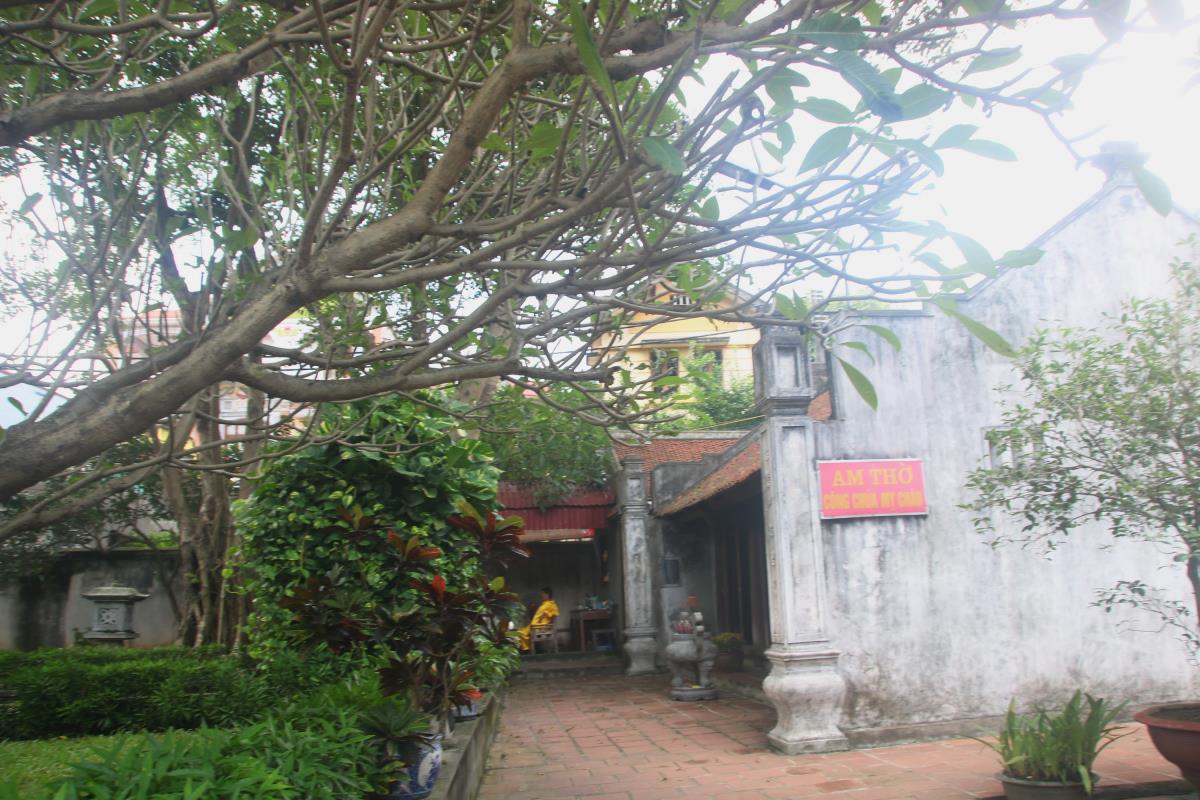 Am Mỵ Châu nhỏ, sân tráng xi măng cũng giống như các đền đài cổ nhưng không được trang trí nhiều. Bởi Mỵ Châu là người có tội nên chỉ là cái am tưởng nhớ. Điều thú vị là bên cạnh bàn thờ có một cách của chấn song sắt, có khóa hẳn hoi. Nơi đây là nơi nhốt bức tượng không đầu được cho là hiện thân của Mỵ Châu công chúa. Theo chuyện kể thì khi bị chém đầu, thân mình Mỵ Châu biến thành một tượng đá cụt đầu trôi ngược biển Đông, về đến dòng sông đất Cổ Loa thì dừng lại ở đó. Dân làng Cổ Loa làm lễ xin được rước tượng đá về thờ. Tượng khiêng bằng võng. Khi khiêng về đến đền "Ngự triều Di quy" (Đình Ngự Triều Di Quy nằm gần giữa khu thành Nội, cách đền thờ An Dương Vương khoảng 300 m về phía đông, phía trước là một khoảng sân rộng, bên tây là am Mỵ Châu, bên đông là xóm Chợ, phía sau là chùa Bảo Sơ) bỗng nhiên tượng tuột xuống, không thể khiêng đi được nữa.