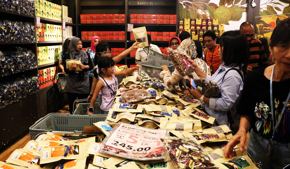 Sau khi giới thiệu với khách về cây ca cao và các cách làm ra chocolate, khách tự do tham quan thế giới của các sản phẩm chocolate. Thú thật là tôi khá bất ngờ với các cô gái là nhân viên của cửa hàng đứng mọi nơi mời khách ăn thử các sản phẩm chocolate, bạn ăn tùy thích, ăn bao nhiêu cũng được. Chính vì sau khi ăn…thấy ngon mà bắt đầu đi vào để mua. Nào là chocolate trắng đến đen đến trà xanh, sữa, hạnh nhân bố trí từ cao cấp được đặt trong các bao bì sang trọng, trong các hộp thiếc rất đẹp… đến các loại rẻ hơn một chút với bao bì đơn giản trình bày rất bắt mắt. Đặc biệt là cách bán rất kích thích. Ví dụ nếu mua một gói là 50 RM, mua ba gói chỉ còn 100 RM, nên ai cũng mua ba để hưởng giá rẻ.