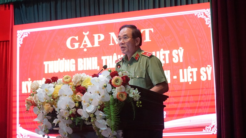 Tại buổi gặp mặt, các đại biểu đã cùng ôn lại lịch sử đấu tranh hào hùng của dân tộc Việt Nam, sự cống hiến, hy sinh quên mình của bao thế hệ cha anh đi trước vì nền độc lập, tự do của dân tộc. Thay mặt lãnh đạo và cán bộ chiến sĩ lực lượng Công an toàn thành phố, Thiếu tướng Vũ Xuân Viên bày tỏ lòng biết ơn đối với các Anh hùng liệt sỹ đã hy sinh vì Tổ quốc. Gửi lời thăm hỏi ân cần và tri ân sâu sắc đến các Bà Mẹ Việt Nam Anh hùng, các đồng chí thương binh, bệnh binh, thân nhân gia đình liệt sỹ, người có công với cách mạng. “75 năm qua, Ngày thương binh – Liệt sỹ đã đi vào lịch sử đất nước ta, là ngày lễ lớn, hội tụ đầy đủ ý nghĩa chính trị, đạo lý “Uống nước nhớ nguồn”, “Đền ơn đáp nghĩa” của dân tộc ta”, Thiếu tướng Vũ Xuân Viên bày tỏ.
