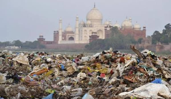 Theo báo cáo năm 2017 của Viện Nghiên cứu Kỹ thuật Môi trường Quốc gia (NEERI), cơ quan nghiên cứu kỹ thuật hàng đầu của Ấn Độ, tình trạng quản lý chất thải rắn xung quanh Taj Mahal cũng đang làm xói mòn giá trị di sản của nó. Báo cáo nói rằng, Tổng Cty Agra nên dừng ngay lập tức việc đốt chất thải vì đang gây ô nhiễm nghiêm trọng cho di tích này. Trong nghiên cứu này, nhóm NEERI phát hiện, chất thải sinh hoạt do các khách sạn và nhà hàng thải ra được xử lý “trong một bãi rác không kiểm soát được gây ô nhiễm nguồn nước và không khí”.