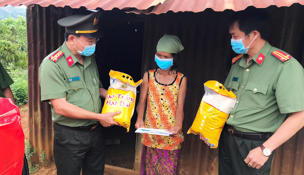 Đại tá Hồ Văn Mười – Giám đốc CA tỉnh Đắk Nông cho biết thêm: “Cùng với việc bảo đảm tốt tình hình ANTT, chủ động triển khai có hiệu quả các biện pháp phòng, chống dịch Covid -19, lực lượng CA Đắk Nông đã phân loại được những trường hợp nghi ngờ mắc Covid-19, kịp thời phát hiện những trường hợp đến và về từ vùng dịch để trao đổi, phối hợp với ngành Y tế và các đơn vị liên quan tổ chức cách ly. Trong quá trình rà soát, lực lượng CA Đắk Nông còn nhận thấy có một số hộ gia đình có hoàn cảnh đặc biệt khó khăn, người già neo đơn, ốm đau, bệnh tật ở địa bàn vùng sâu, vùng xa, vùng biên giới đang gặp nhiều khó khăn trong thời kỳ giãn cách xã hội. CA Đắk Nông đã trích một phần kinh phí tình nghĩa và phát động phong trào ủng hộ của CBCS để hỗ trợ lương thực cho các hộ dân”.