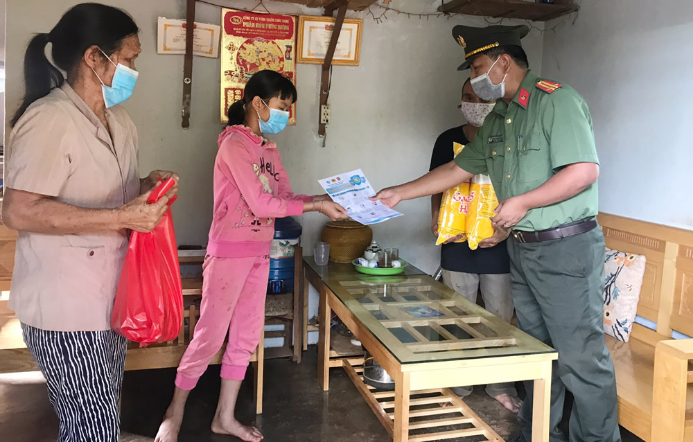 Đại dịch Covid-19 tác động đến mọi mặt của đời sống xã hội, nhất là đối với những hộ gia đình ở vùng sâu, vùng xa, vùng biên giới. Với mong muốn chung tay cùng toàn xã hội sẻ chia những khó khăn, vất vả của người dân, từ ngày 14-4 đến ngày 16-4, Giám đốc CA tỉnh Đắk Nông đã giao cho Đoàn Thanh niên, Hội phụ nữ CA tỉnh phối hợp với Phòng Phong trào bảo vệ ANTQ và CA các huyện, thành phố đến từng nhà, từng khu dân cư ở địa bàn vùng sâu, vùng xa vùng đồng bào dân tộc thiểu số (DTTS) và biên giới để thăm hỏi, động viên, trao tặng gạo và một số nhu yếu phẩm khác cho các hộ gia đình có hoàn cảnh đặc biệt khó khăn, người già neo đơn, ốm đau, bệnh tật trên địa bàn tỉnh. Đón nhận những món quà nghĩa tình, bà Trần Thị Hoa, người dân ở H. Đắk Song xúc động: “Năm nay do hạn hán kéo dài, nông sản mất giá và tình hình dịch bệnh nên người nông dân như chúng tôi hết sức khó khăn. Nhận được những món quà nghĩa tình và được trao tận tay từ lực lượng CA, chúng tôi thực sự xúc động và thấy rất ấm lòng”.