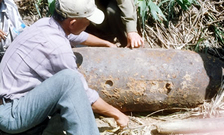 Một quả pháo nặng hơn trăm ki-lô-gam bị “xẻ thịt” lấy thuốc nổ |