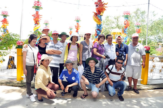Du khách chụp ảnh ở di tích Đạo Dừa. Ảnh: C.H
