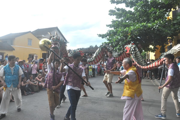 Các nghệ nhân múa rồng tỉnh Nagasaki hướng dẫn người dân và du khách ở Hội An múa rồng truyền thống của tỉnh Nagasaki. |
