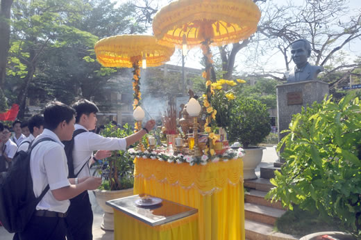 Học sinh Đà Nẵng thắp hương tưởng niệm nhà chí sĩ yêu nước Thái Phiên. |