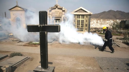 Nhân viên y tế phun thuốc diệt muỗi phòng chống bệnh Zika ở Lima, Peru. Ảnh: AP