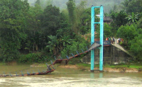 | Cầu treo ở Sơn Thủy, H. Sơn Hà (Quảng Ngãi) bị sập. |