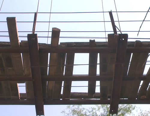 | Lỗ chỗ mặt cầu treo ở xã Ba Ngạc, H. Ba Tơ (Quảng Ngãi). |