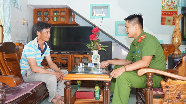 Anh Lê Công Hoa trò chuyện với chiên sĩ công an.