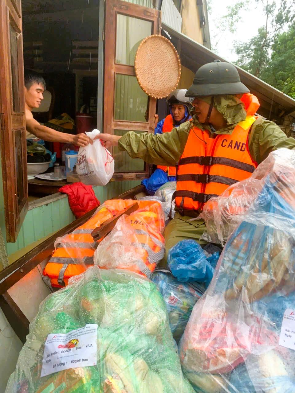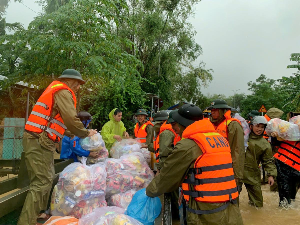 Tại những điểm xung yếu khác như xã Gò Nổi, Duy Xuyên, Vu Gia, Hà Nha, Đại Lộc, Nông Sơn, Quế Phước, Duy Xuyên, Thu Bồn và Phú Thuận, hàng trăm cán bộ chiến sĩ Công an khác bám trụ 24/24h tại địa bàn, dầm mình trong nước bạc, đi từng ngõ, gõ từng nhà để hỗ trợ di dời hàng trăm hộ dân. Trong khi đó, sau một đêm trắng vận chuyển lương thực, thuốc men cho bệnh viện Đa khoa Điện Bàn, Đội Thanh niên xung kích Công an TP tiếp tục đóng gói, vận chuyển hàng nghìn phần quà cứu trợ để kịp thời hỗ trợ người dân vùng ngập sâu. Gần 1.000 túi an sinh chứa mì tôm, lương khô, bánh ngọt, sữa và nước uống đã được vận chuyển đến các điểm tập kết, từ đó tỏa về Duy Xuyên, Đại Lộc, Hà Nha.