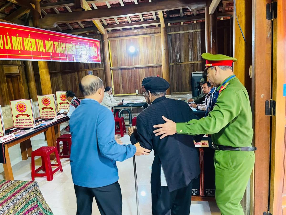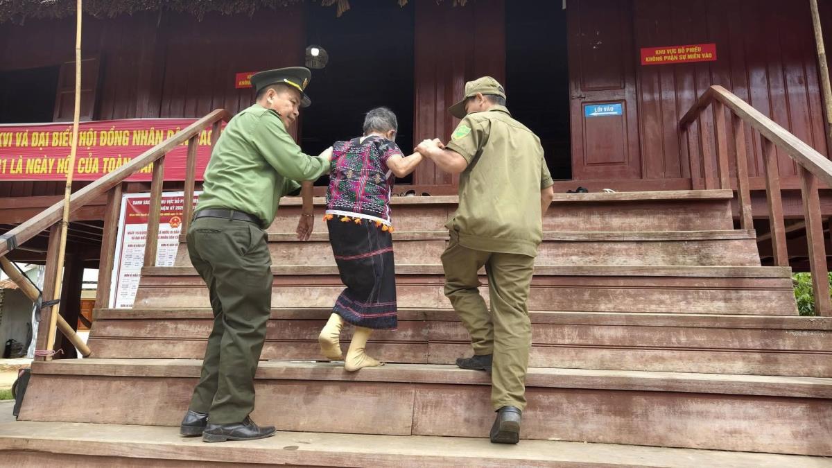 Xúc động trước nghĩa cử này, bà Alăng Thị Đhế, cử tri khu vực điểm bỏ phiếu số 12, thôn Ta Lang chia sẻ: “Cảm ơn các chú Công an rất nhiều. Nhờ có các chú tận tâm giúp đỡ, những người già yếu như tôi mới có thể tự tay hoàn thành quyền công dân của mình.”