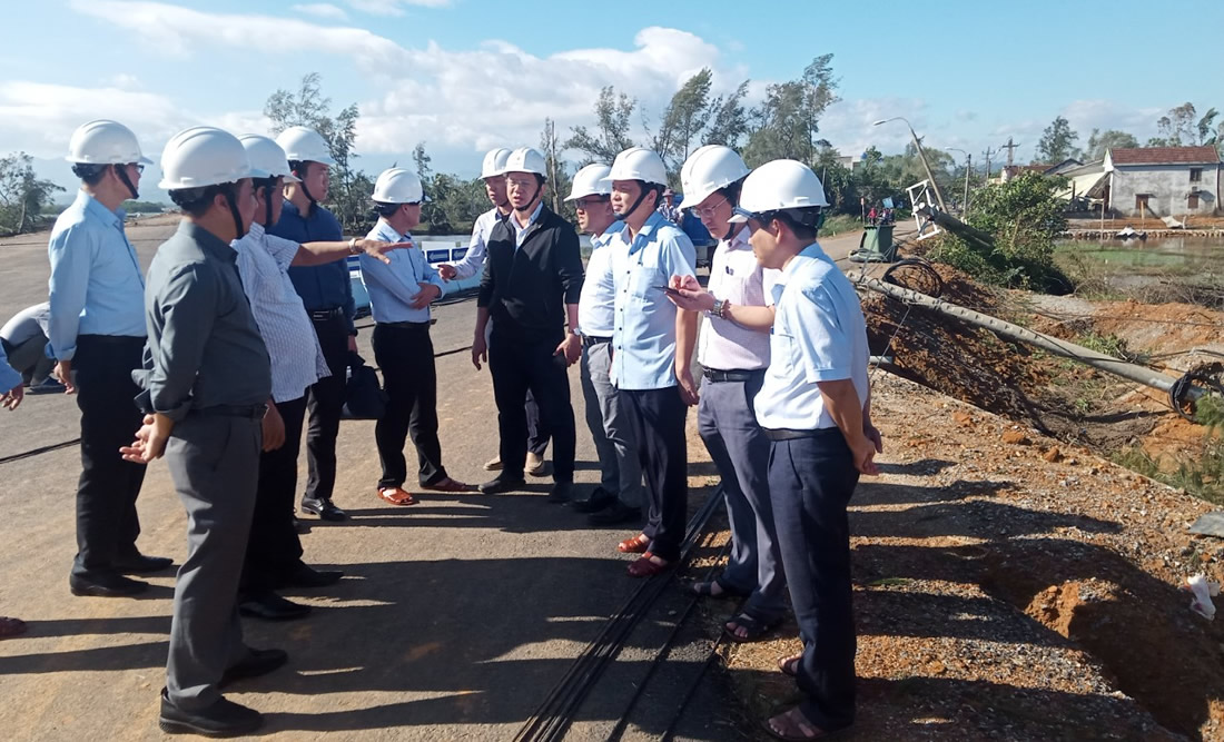 Đoàn công tác của ngành Điện do ông Ngô Sơn Hải – Phó tổng giám đốc Tập đoàn Điện lực Việt Nam kiểm tra sau bão tại Quảng Nam. |